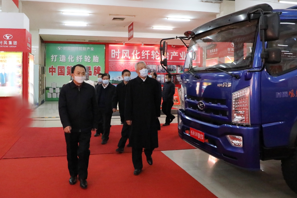 在时风热电产业园展厅沙盘前,刘成强董事长向凌文副省长汇报了时风集团产业园区在高唐县城的分布和产业发展情况。随后参观了时风巨型工程轮胎、锦纶工业布、轻卡汽车、拖拉机、盘扣式脚手架形象架等展区。