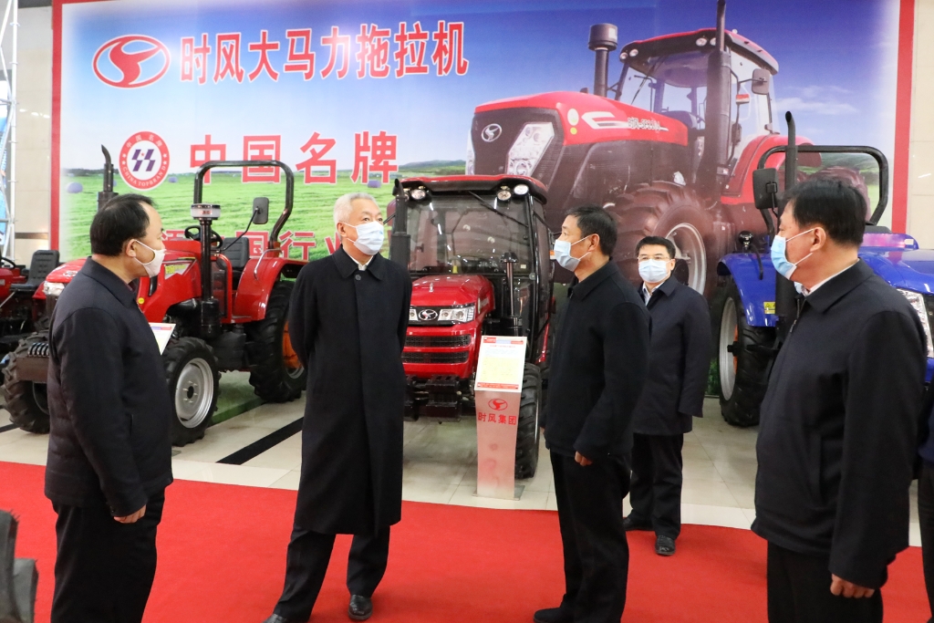 凌文副省长详细察看了SF2404大型拖拉机产品,直接站在拖拉机踏板上看了驾驶室内车辆档位等结构情况并询问道,“这是四驱的,有几个档位?”刘成强董事长回答说,“是四驱的,有64个档位,32个前进档、32个倒档。应用GPS定位和无人驾驶等技术,丰富TG、TD、TE系列中大型拖拉机产品,使农业装备向国Ⅳ智能农机升级。时风大中型拖拉机都是农机补贴产品,对农业深耕深松、加快农业机械化起到了有力的促进作用。”凌文副省长点了点头。
